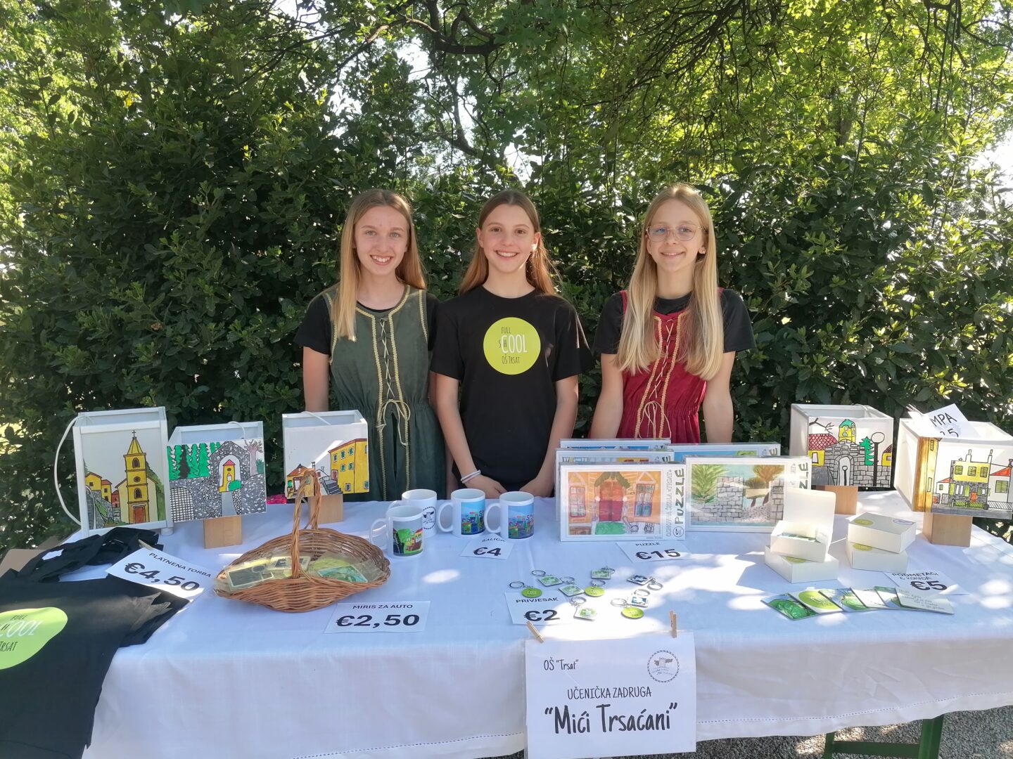 U tjednu od 21. do 26. travnja 2026. održali su se Dani Trsata, manifestacija koja kroz raznovrsna događanja poput predstava, koncerata, sportskih igara i radionica slavi trsatsku povijest i tradiciju. Na centralnom događanju na Trsatskoj gradini u subotu, 25. travnja, sudjelovale su naše učenice Eva Felker, Petra Kelebuda i Luce Bilić, članice učeničke zadruge „Mići Trsaćani“. Učenice su predstavile proizvode s motivima Trsata, njegove bogate povijesti i brojnih legendi koje je naša zadruga kroz godine izrađivala.