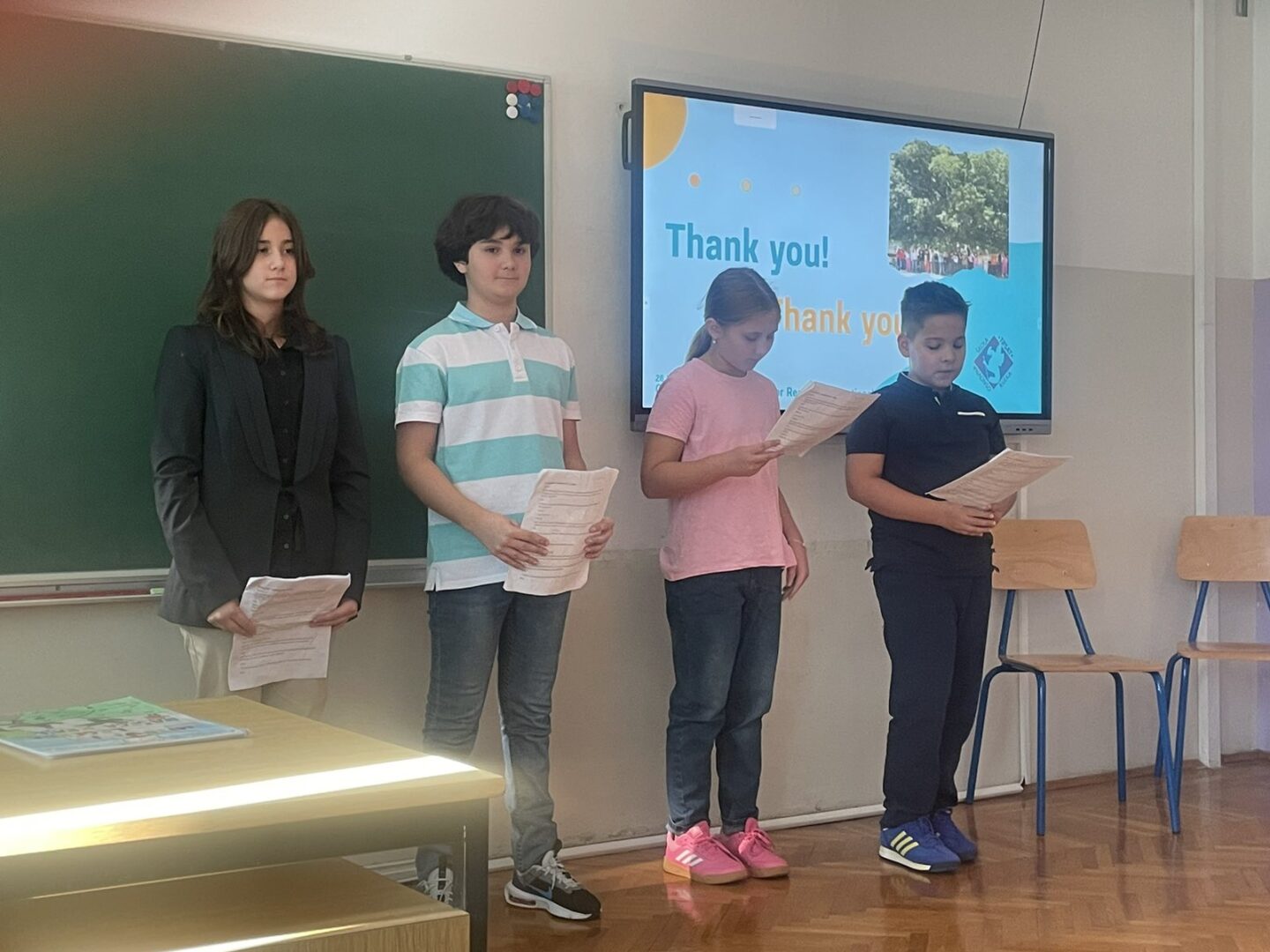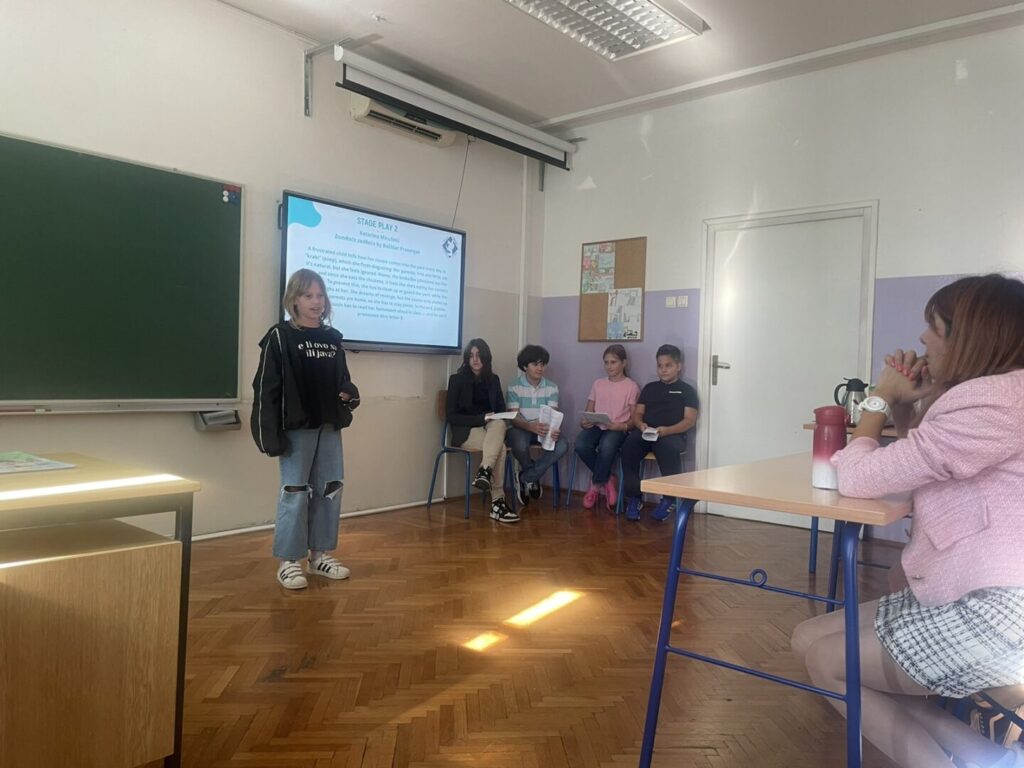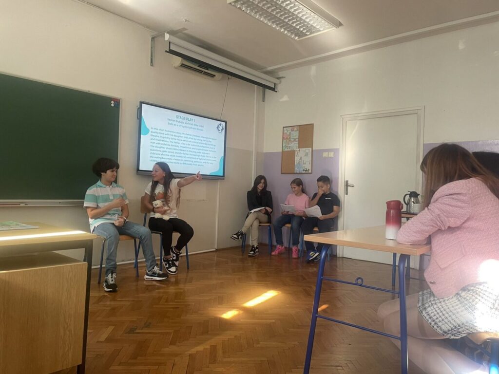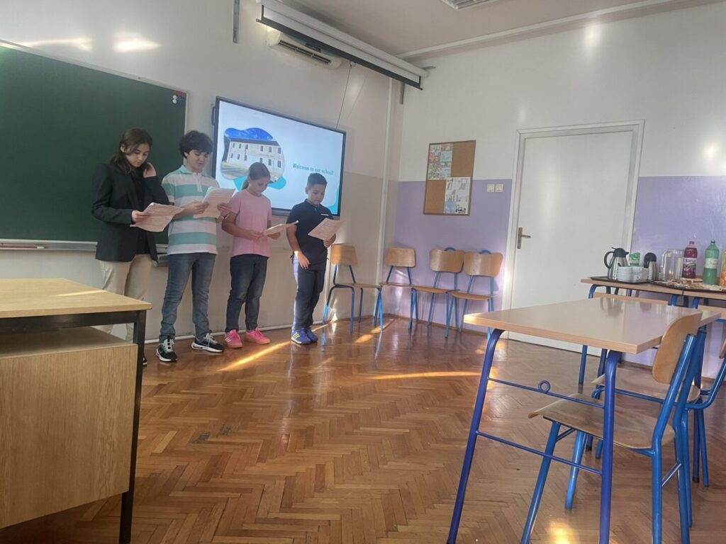 U petak, 26. rujna 2025. naša je škola bila domaćin dijelu sudionika međunarodne konferencije koja se održavala na Filozofskom fakultetu Sveučilišta u Rijeci na temu “Suradničko vođenje za otpornost odgojno-obrazovnih ustanova”. Učenici četvrtih razreda Sofia Radaković i Niko Nonković uz bok sedmaša Vile Kaić i Daria Dubajića oduševili su sve prisutne svojim znanjem engleskog jezika vodeći skup i najavljivljujući predavanja zaposlenika naše škole. Kratka predavanja o odgojno-obrazovnom sustavu i radu naše škole održale su ravnateljica Petra Predoević Zadković, socijalna pedagoginja Lucija Brkljačić, učiteljice Tamara Kolić Adžić, Maja Krpan, Karmen Kadić i Iva Močibob. Sudionici su imali prilike uživati i u dramskim izvedbama učenika Kali Albe Srdoč i Vedrana Dubajića (7. razred) te Katarine Miculinić (5. razred).
